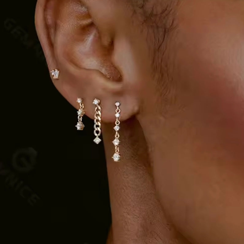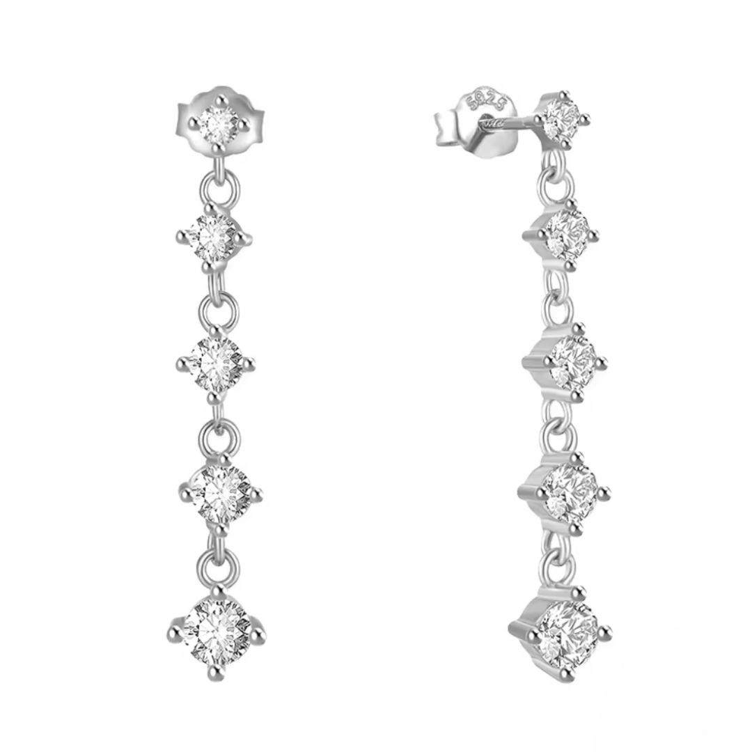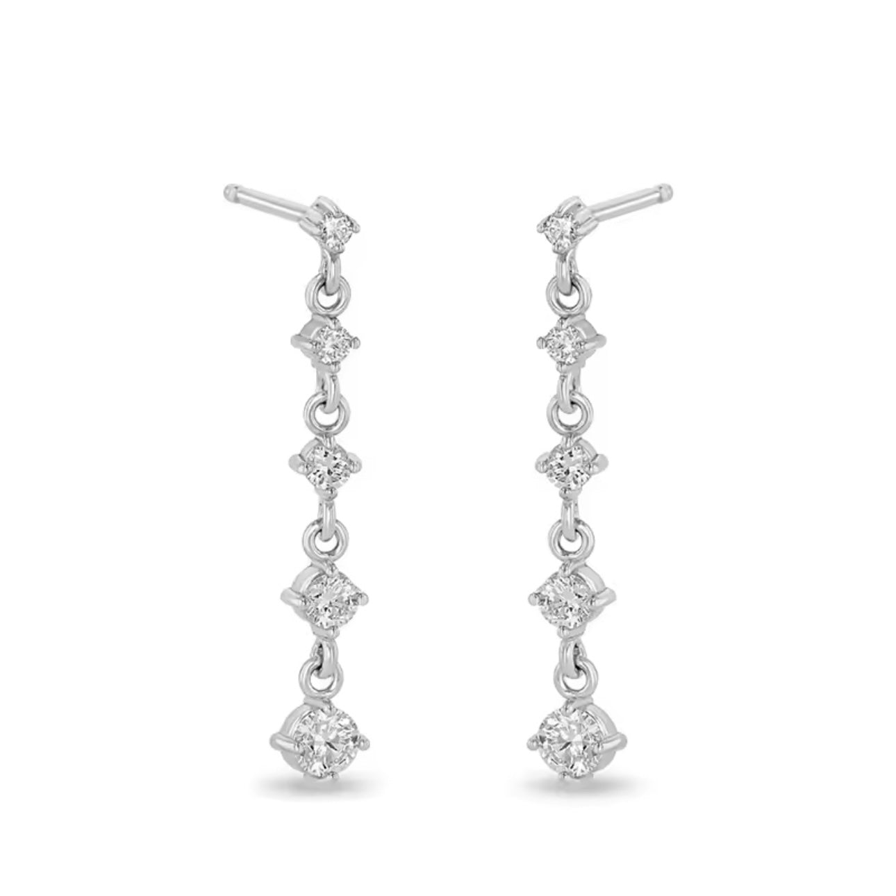 Small white Moissanite diamonds glisten on elegant drop earrings in 18-karat White gold. These earrings are great for everyday wear. These romantic, light-catching drop earrings are perfect for wearing alone or pairing with other earrings. ✨✨✨
