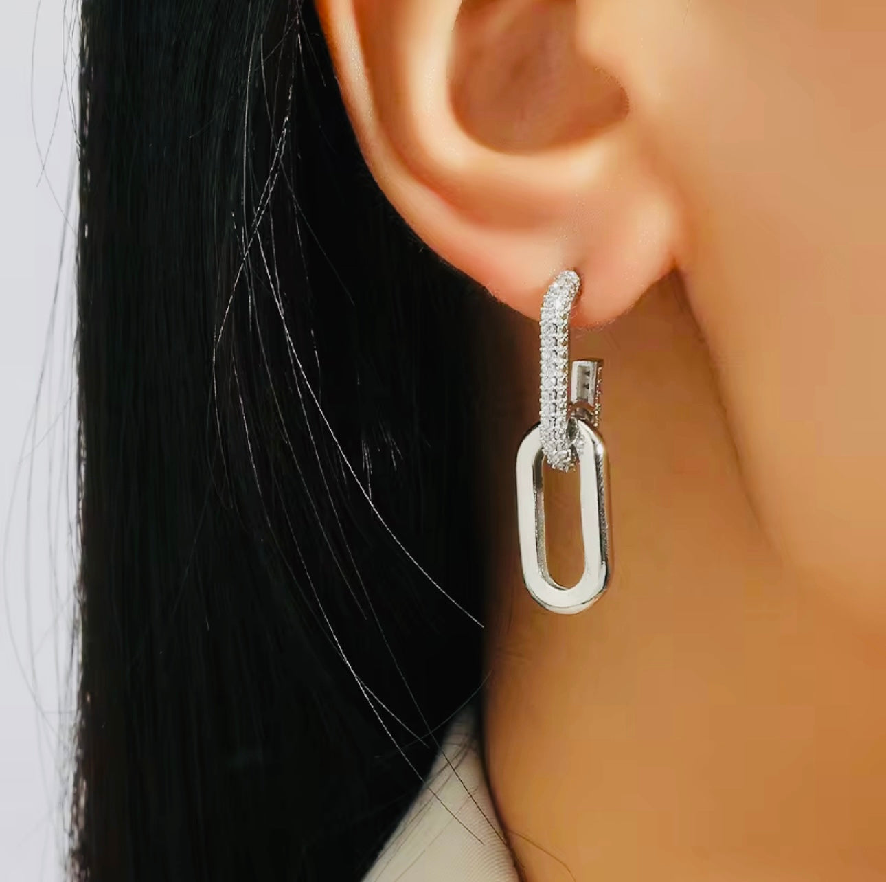 Paper clip jewelry is a hot trend this season, such, adding a couple of pieces from the Park Ave Link collection, is a must. Try this paper clip earring for a change! It is fashionable and in style. The earring features a small plain link that houses the push-back ear nut closure, attaching to a larger paper clip link. The larger link is embellished with a total of 48 pave set round cut Moissanite diamonds, 24 diamonds each on either earring. ✨✨✨