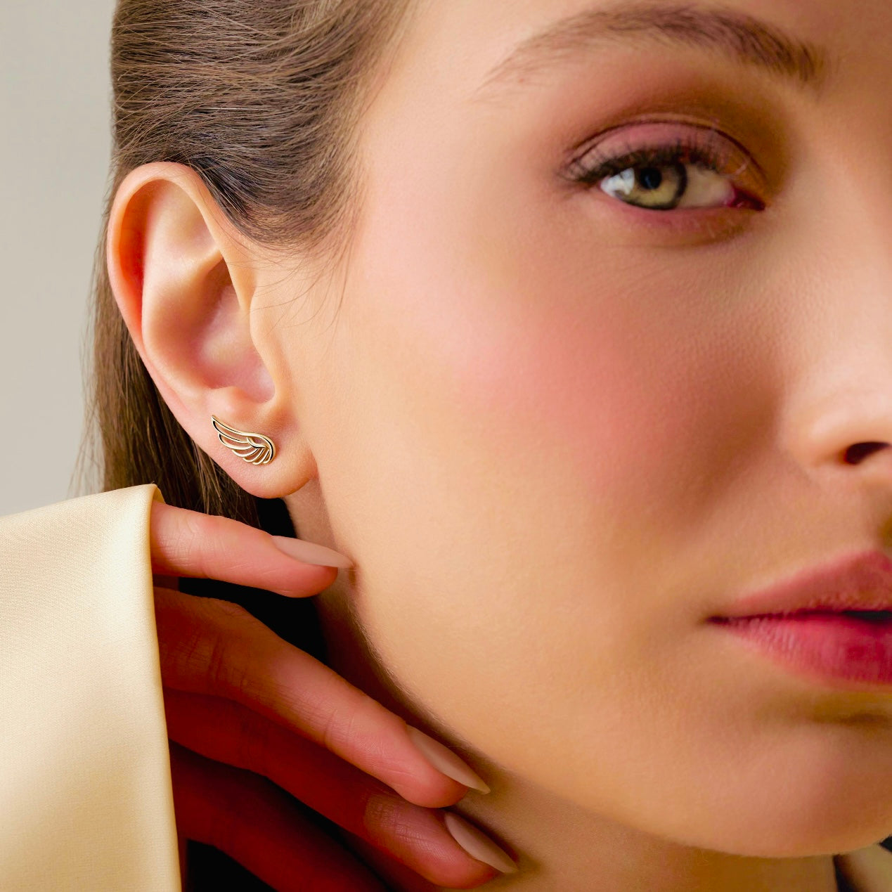 Elevate your style with these angel wing stud earrings. These earrings feature a delicate and intricate design inspired by the graceful wings of an angel. The studs are small enough to wear comfortably every day yet striking enough to make a statement. A beautiful and thoughtful gift for yourself or a loved one, sure to become a cherished addition to any jewelry collection. Shop now and embrace your inner angel. ✨✨✨
