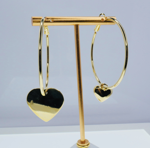 For a chic and timeless look, these Bronx Earrings feature golden hearts in a puff shape and a flat shape. Crafted from water-resistant material, they are a classic choice for any occasion. ✨✨✨