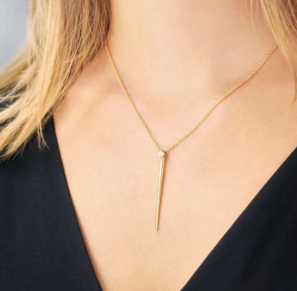 The striking diamond pendant has a Mossanite diamond total weight of .17 DTW. The pendant is crafted in 18c yellow gold and suspended from a 16′-18″ adjustable yellow gold chain secured with a lobster clasp. ✨✨✨