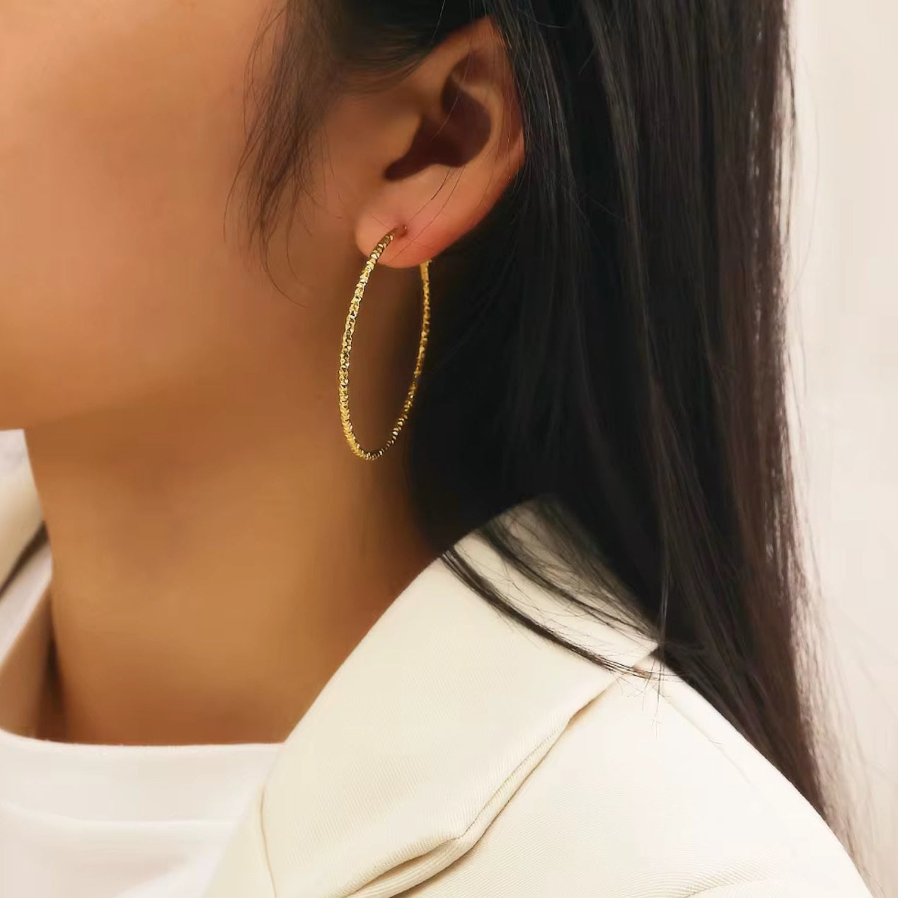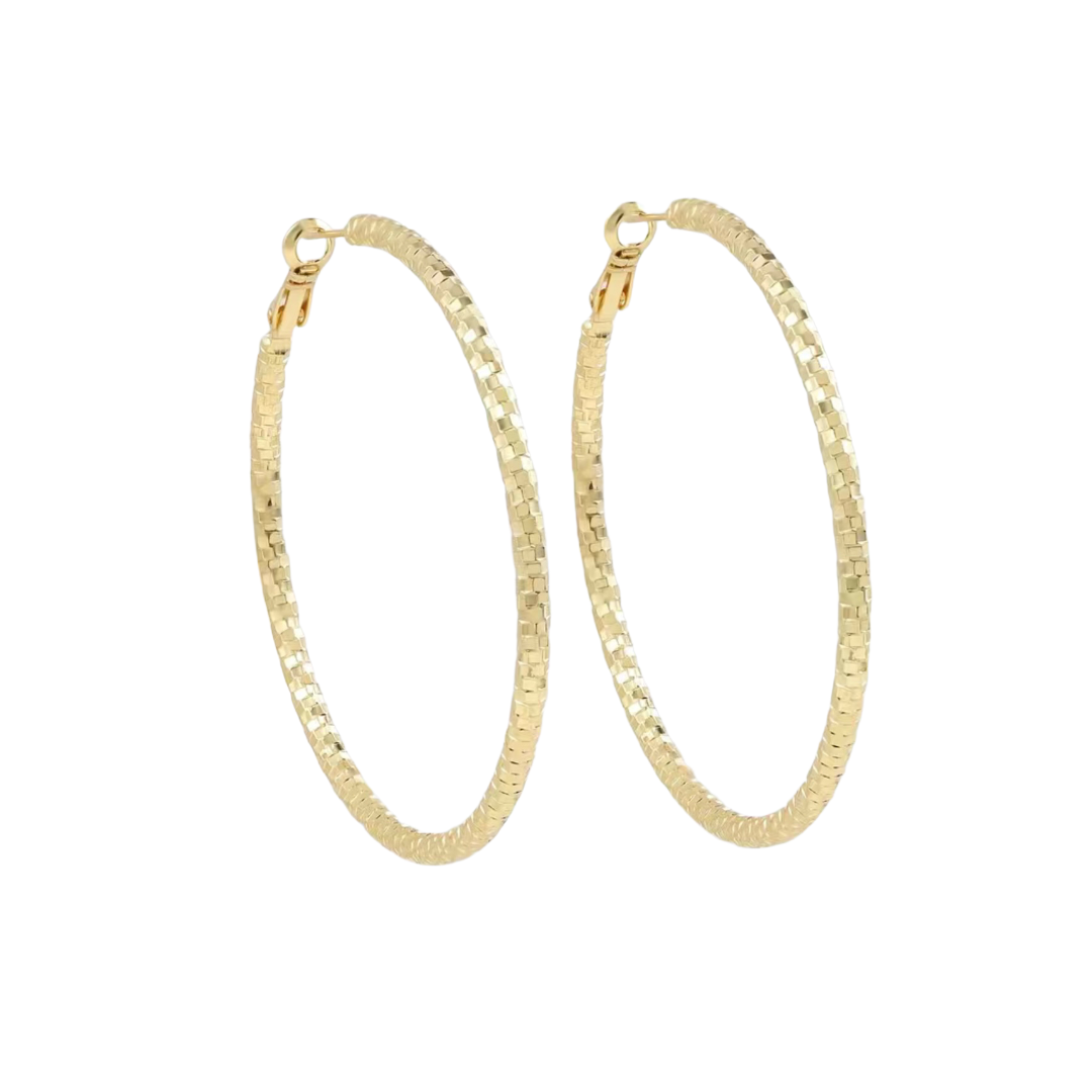 These diamond-cut hoop earrings are as radiant as they are rich-looking. A light-catching textured design brings a sense of drama to these elegant hoop earrings from Italian Gold. ✨✨✨