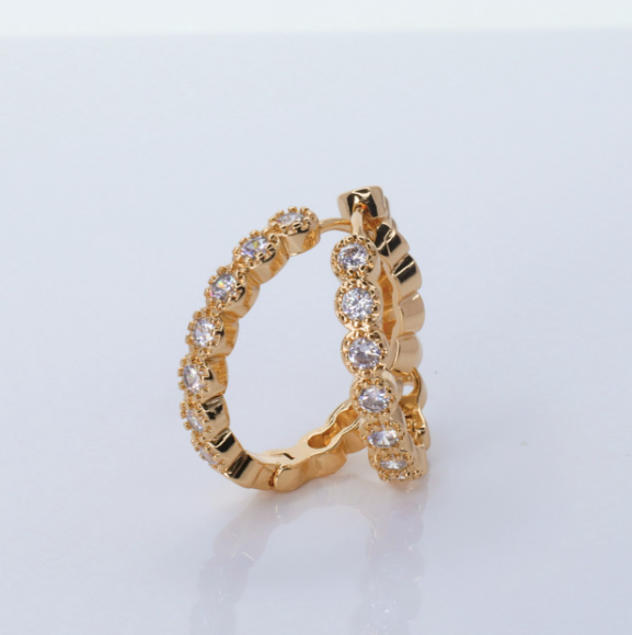 These 5 Mossanite Diamond Hoop Earrings are handcrafted in solid 18K Vermeil gold for a beautiful and lasting look. Each hoop measures approximately 15mm in diameter and is adorned with 5 stunning bezel-set Mossanite diamonds. These earrings are sure to add sparkle to any ensemble. The detailed White Sapphire 18K Gold Vermeil Hoop. Perfect little Hoop Earrings – just the thing for day or night.