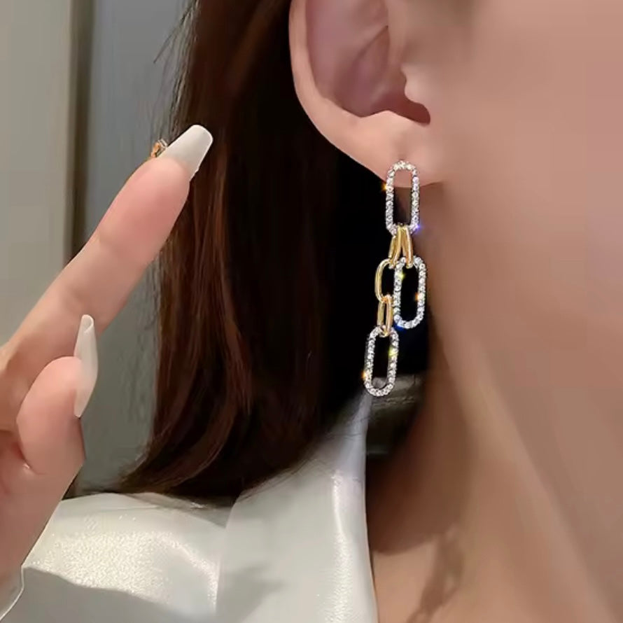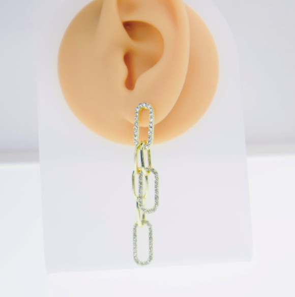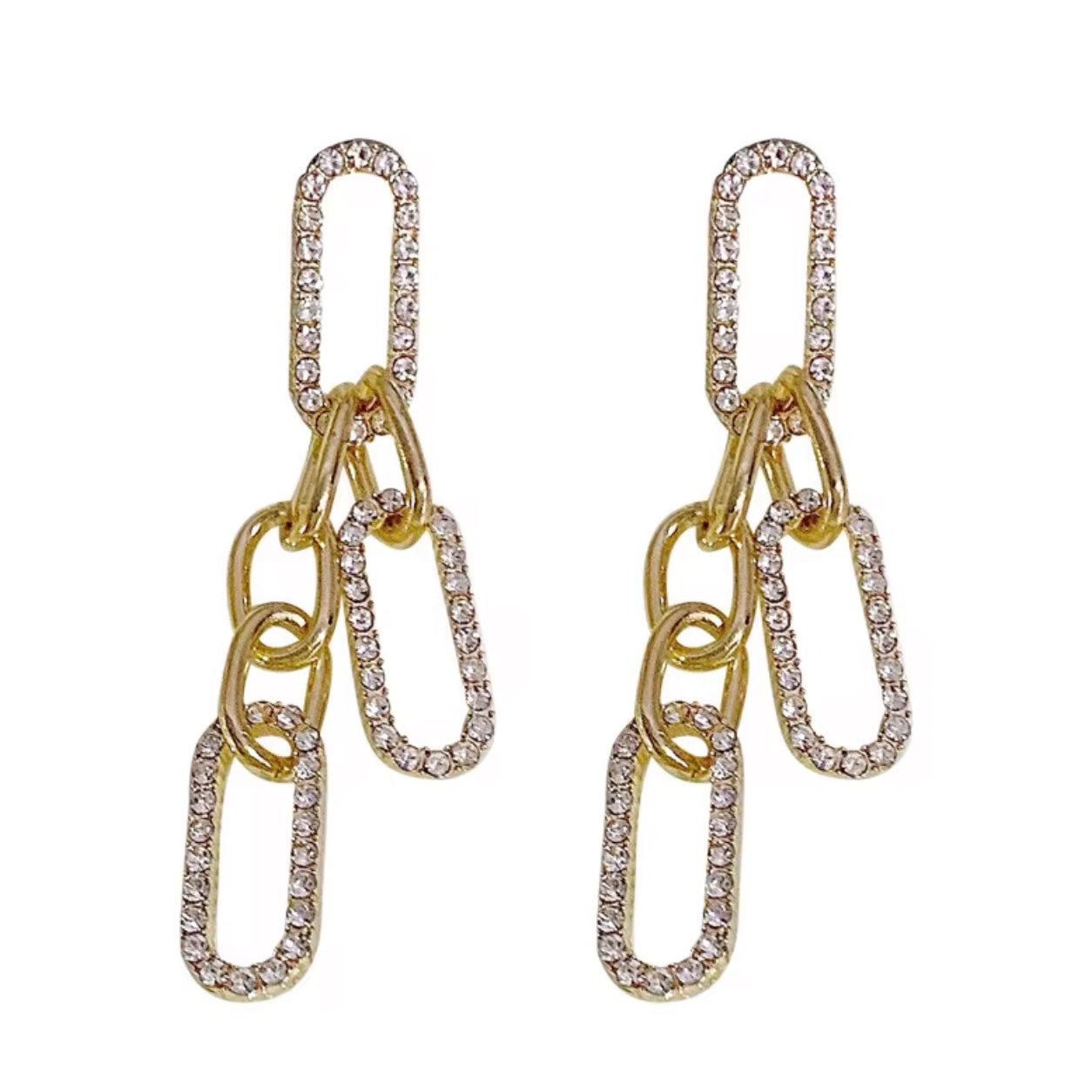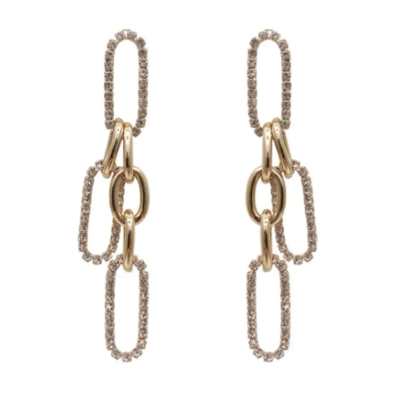 The Charlie Earrings bring back the classic retro look. Suspended from push-back posts, they showcase an interconnected chain-shaped design studded with glittering crystals that add a sense of luxury to these earrings. Exclusively available in gold. ✨✨✨