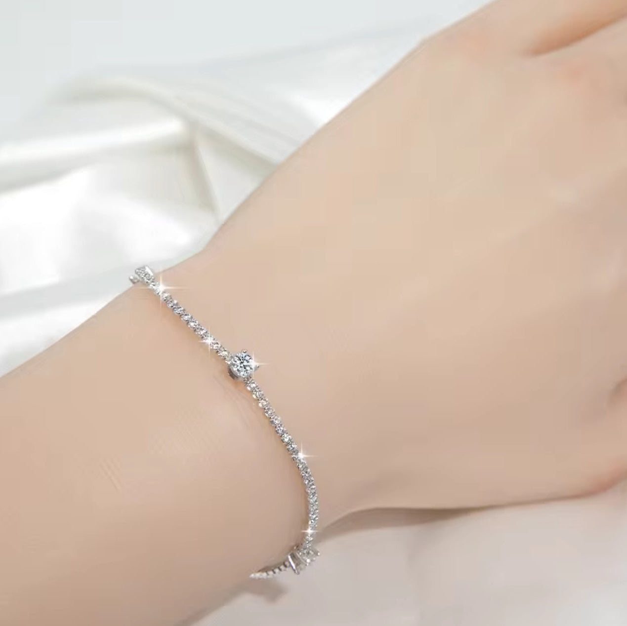 Moissanite Diamonds sparkle in this bracelet crafted in 14K white gold. There are 46 total diamonds, with a total diamond weight of 3 carats. ✨✨✨
