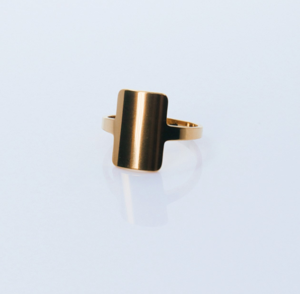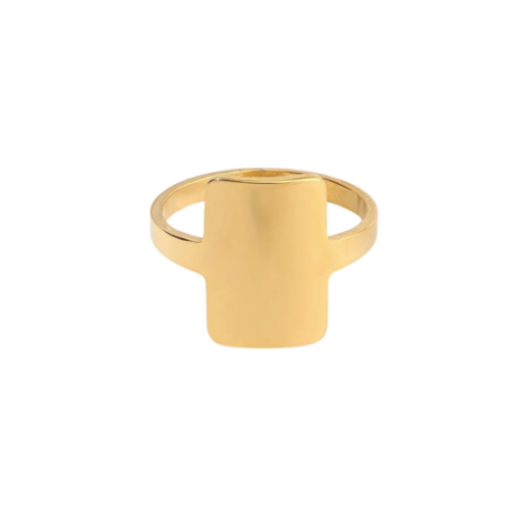 Cosima Flat Signet Ring 14K yellow gold ring with a rectangular plate that curves to the finger. ✨✨✨