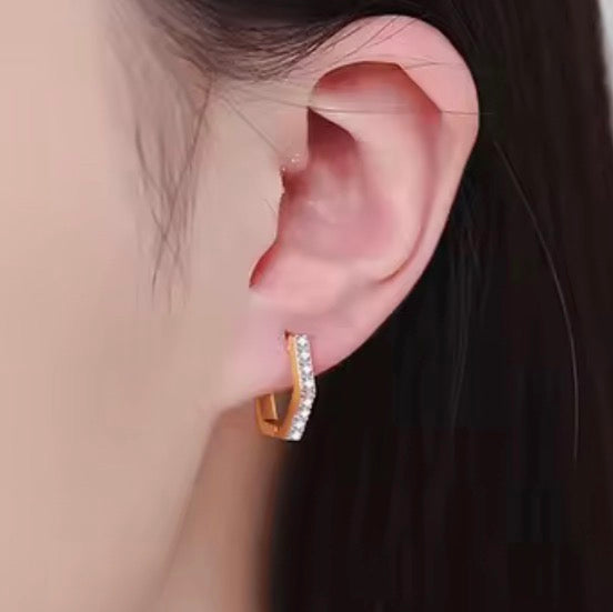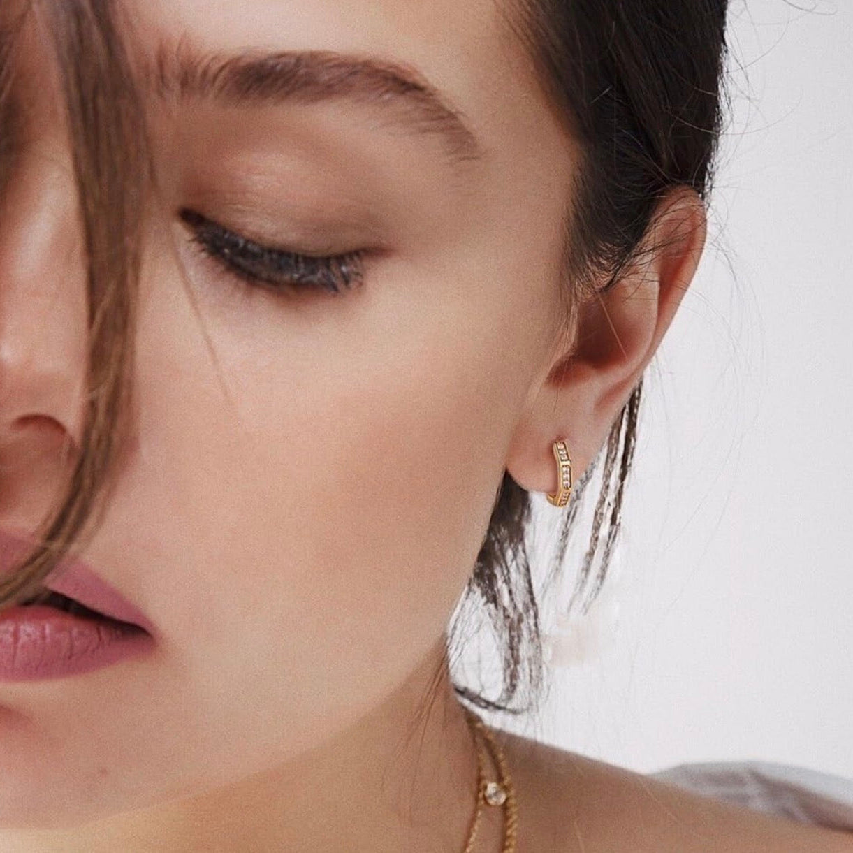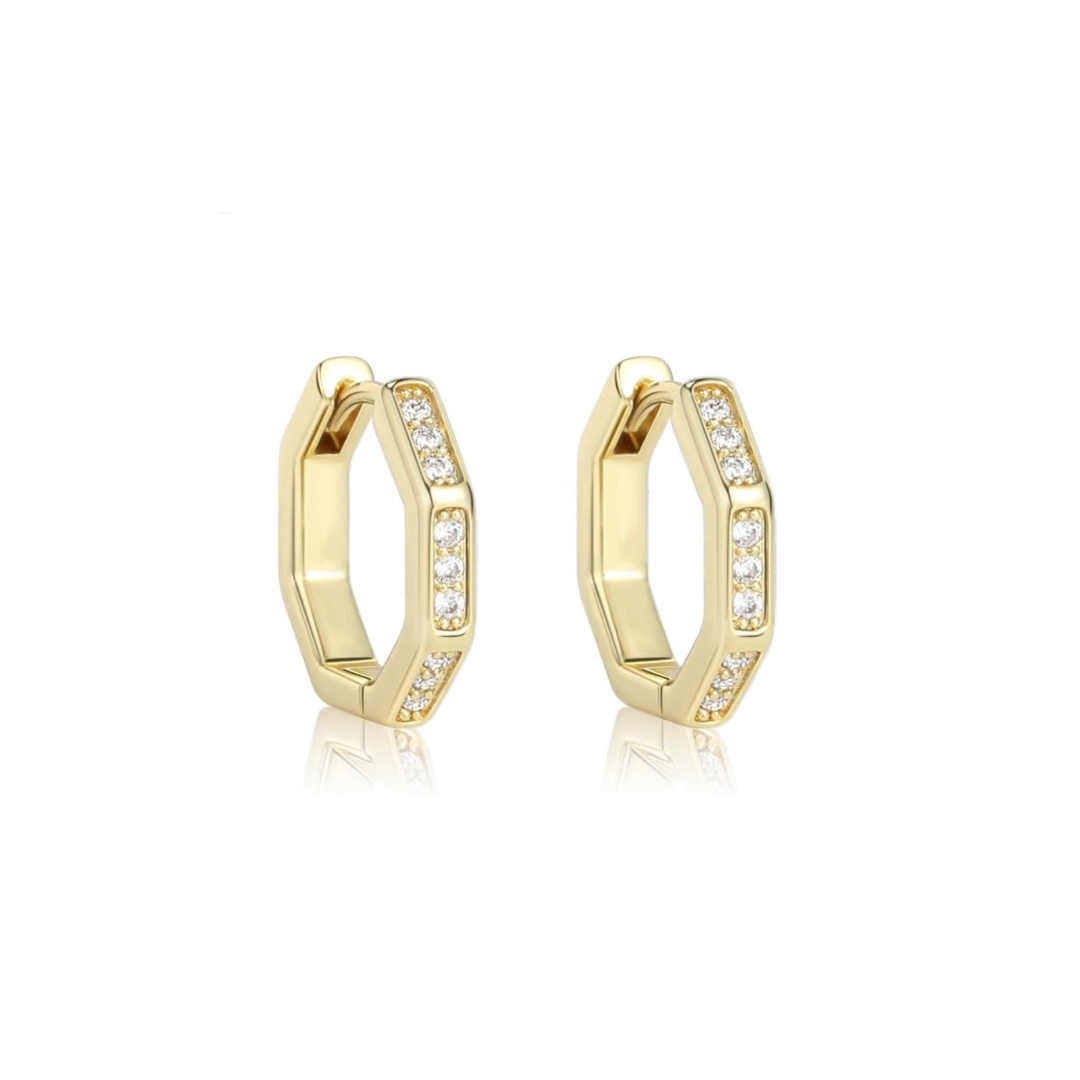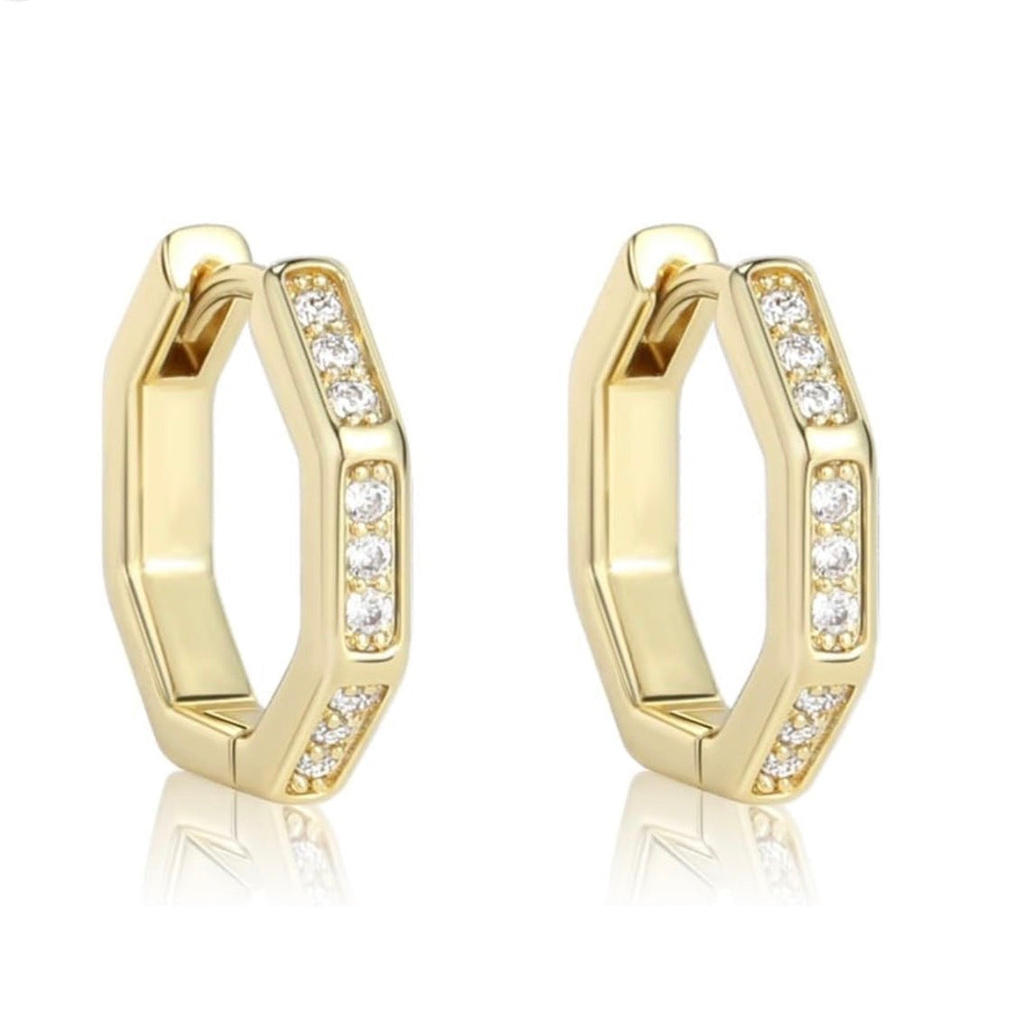 A modern twist on our paved huggies, these beauties have an octagonal shape that shimmers with one row of 9 pave diamonds on each earring. They are timeless and versatile, the perfect cuddle hug for your ears.✨✨✨