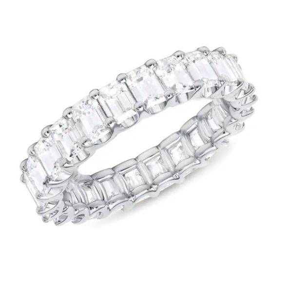 This stunning 14K yellow gold Moissanite Eternity 3.0 band sparkles with emerald-cut white topaz. Step into the luxury life with this icy masterpiece. ✨✨✨