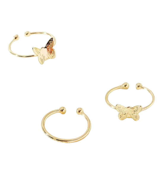 Add a touch of elegance to your summer look with our Gold Butterfly and Band Toe Rings. These shiny and beautiful toe rings are the perfect accessory to showcase your pedicure and add a touch of glamour to your outfit. Made with high-quality materials, these toe rings are durable and comfortable to wear all day long. Elevate your style with our Gold Butterfly and Band Toe Rings and step out in style this season.
