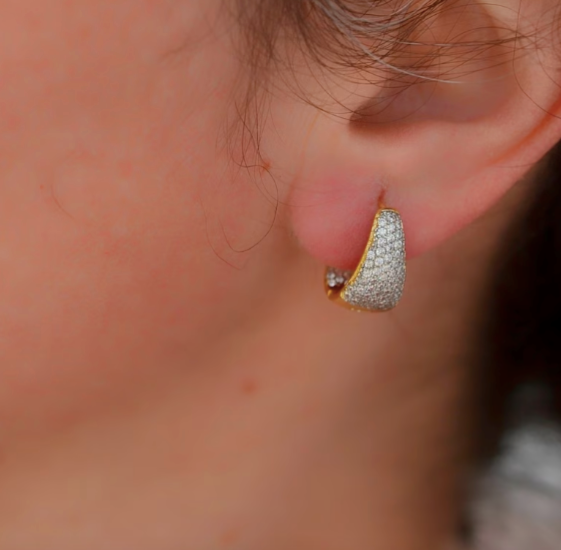 These rows of pavé Moissanite diamonds provide a wide band of brilliance. These timeless pave huggies go from day to night in a flash with their eye-catching simplicity. Set in 14K vermeil white gold and 14K vermeil gold with Moissanite diamonds of F color and VS2 clarity.✨✨✨