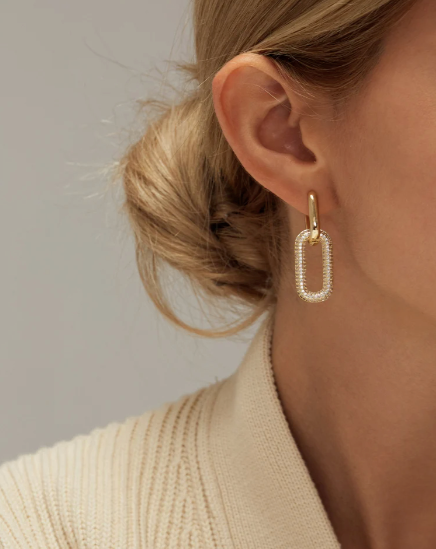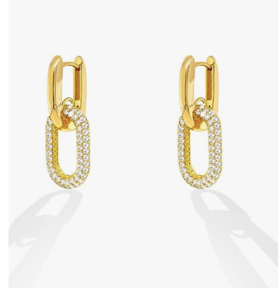 These beautiful chain link dangle earrings look amazing. They feature 0.71ct of round-cut Mossanite diamonds perfectly set in 14k yellow vermeil gold. The beautiful diamond-encrusted link dangles from the contrasting plain link at the top. Take the second link off and wear them as a plain huggie hoop! Truly a gorgeous pair of earrings. ✨✨✨