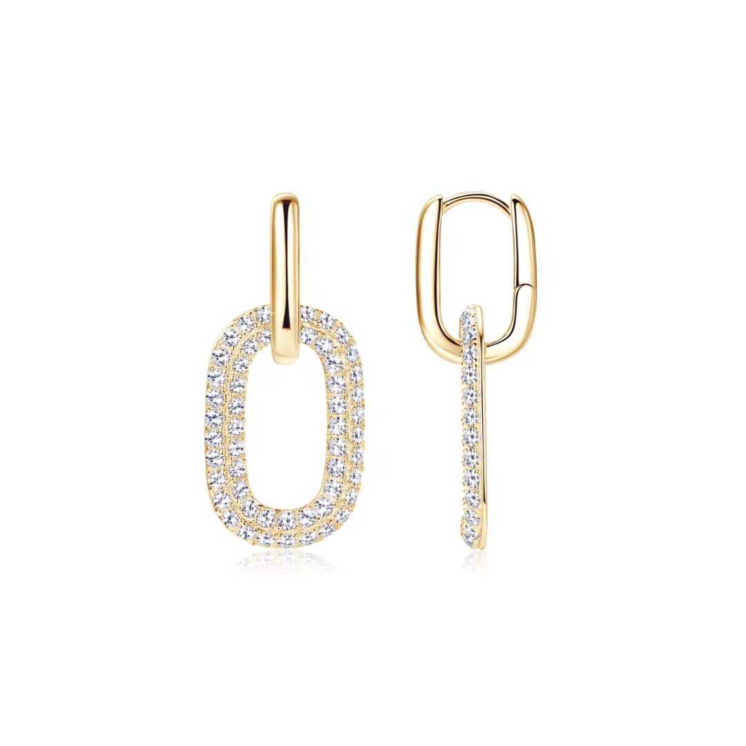 These beautiful chain link dangle earrings look amazing. They feature 0.71ct of round-cut Mossanite diamonds perfectly set in 9k yellow vermeil gold. The beautiful diamond-encrusted link dangles from the contrasting plain link at the top. Take the second link off and wear them as a plain huggie hoop! Truly a gorgeous pair of earrings. ✨✨✨