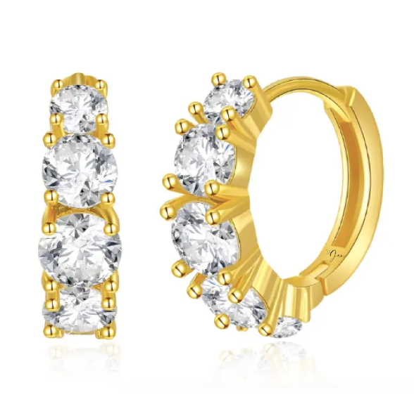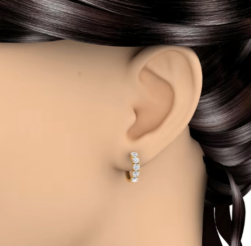 A symbol of Elegance, these Moissanite diamond hoop earrings feature white Moissanite diamonds of 2-carat weight in I2-I3 clarity. This pair of earrings is made in 18K Vermeil gold.