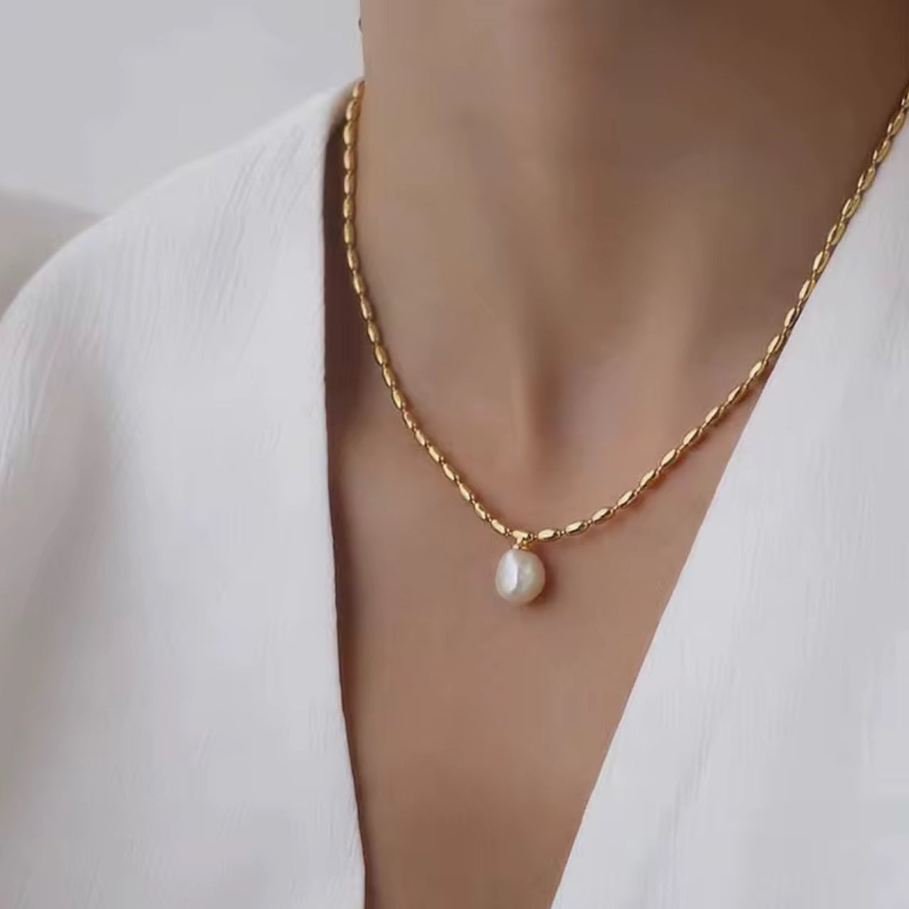 A timeless blend of elegance and classic charm. Featuring a richly polished gold beaded chain and a single natural freshwater pearl, this pieces captures the beauty of soft light and effortless luxury.