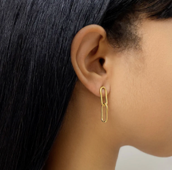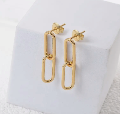 Simple and elegant, these darling paperclip dangle earrings will complete any look. Our 14-karat yellow vermeil gold makes a bold shade that will never fade. The friction backs have a metal engraving on the inside that uses tension to grip the earring post ensuring these stay securely in place. ✨✨✨