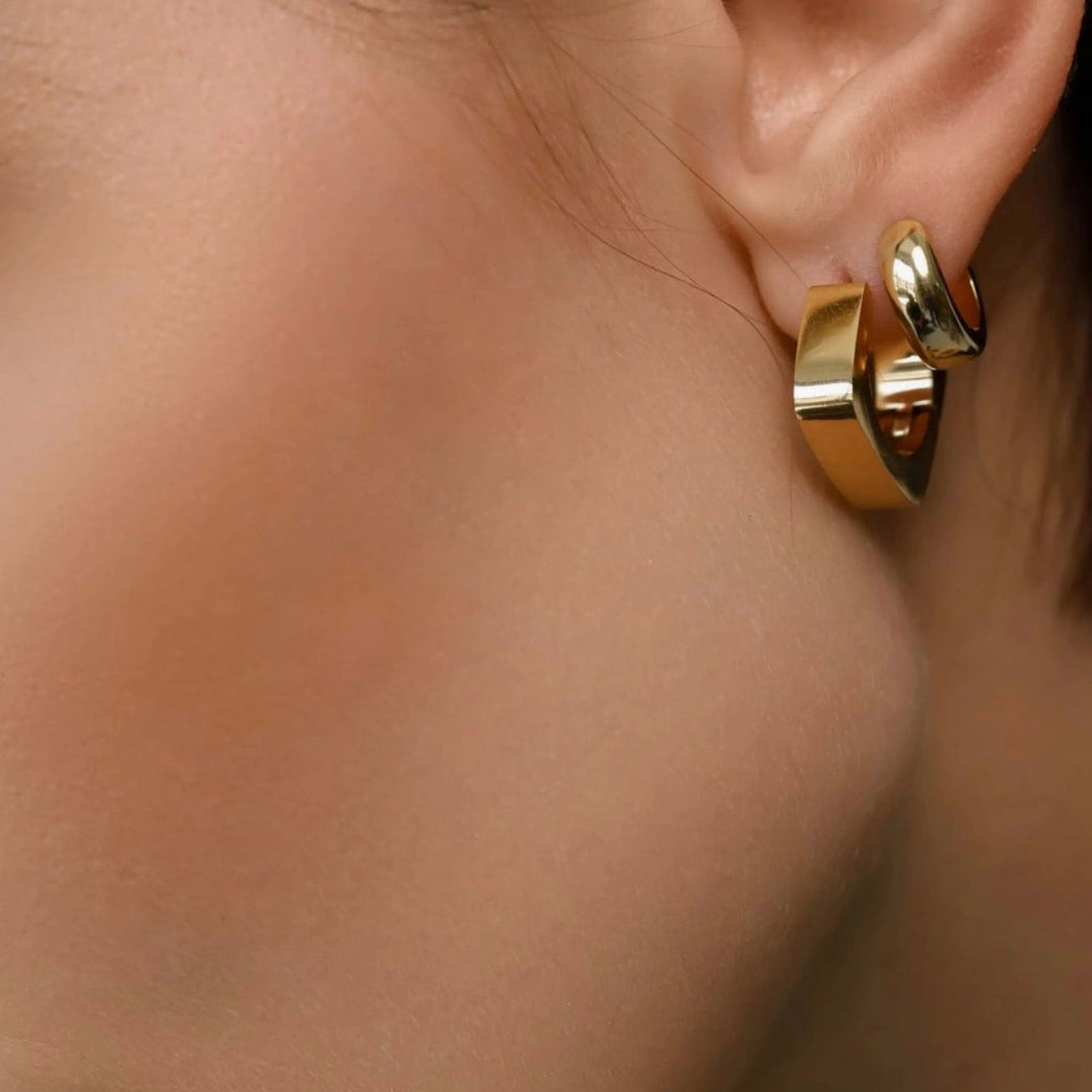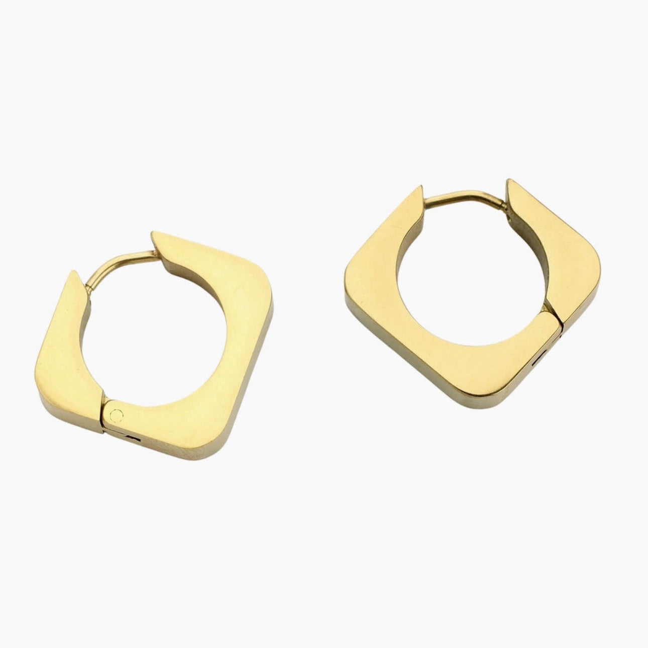 Be a trendsetter with these stylish block-shaped angled medium huggie earrings. Each pair features polished medium block square angled huggies, perfect for making a fashion statement. Add a unique edge to any outfit and step out in style! ✨✨✨