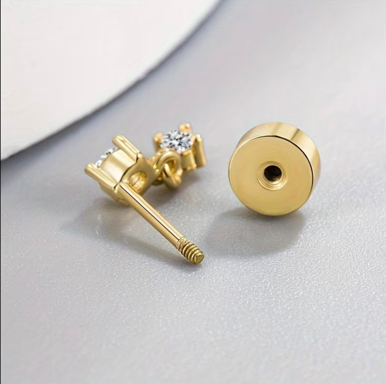 Mi Bella dainty 14K flat back moissinate diamond stud, designed for comfort, versatility, and timeless style. These minimalist studs feature a smooth flat back for all-day wear—perfect for ears, cartilage, nose, or lip piercings.