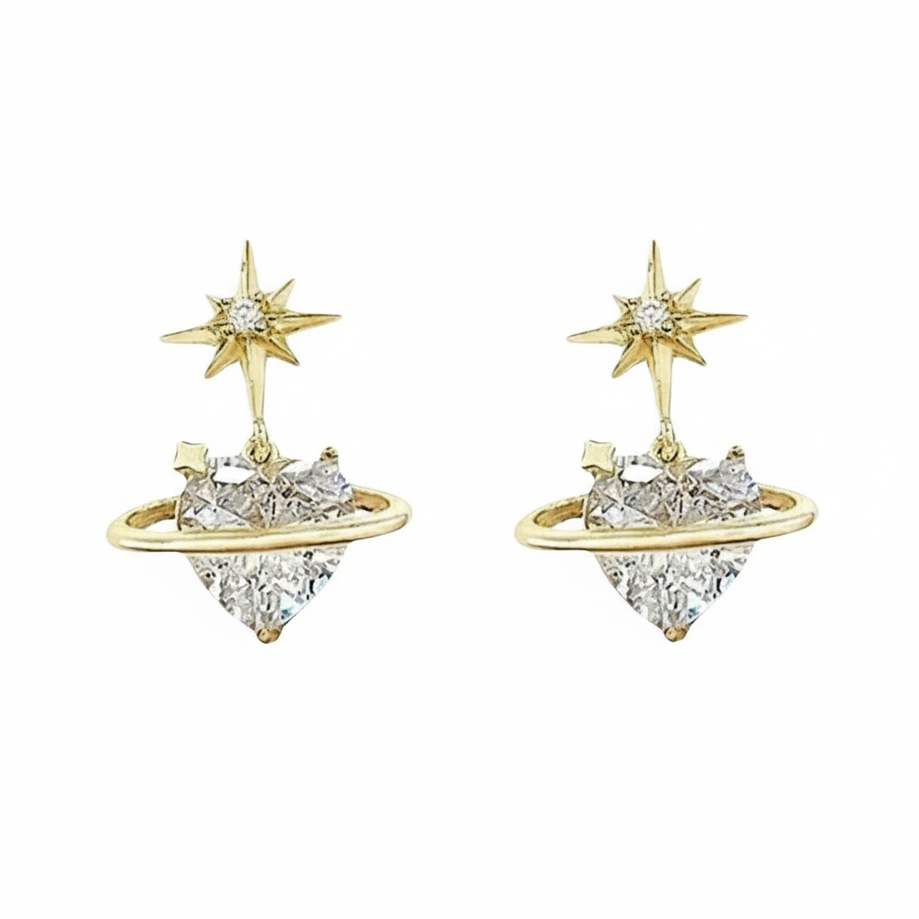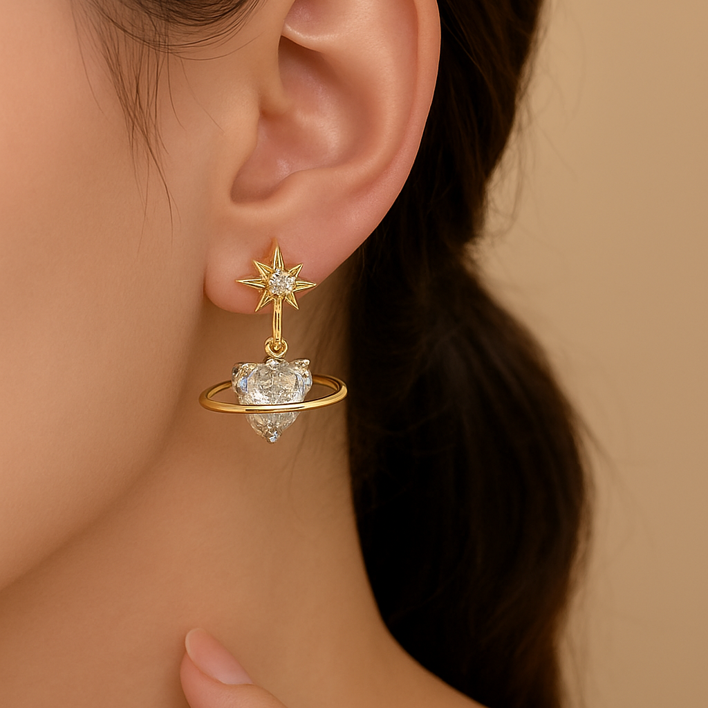 The Shiny Earring features planet-shaped and heart-shaped with twinkling zirconia stones. These lovely earrings can be worn day and into the night. They’re perfect to wear at the office or out on date night. ✨✨✨