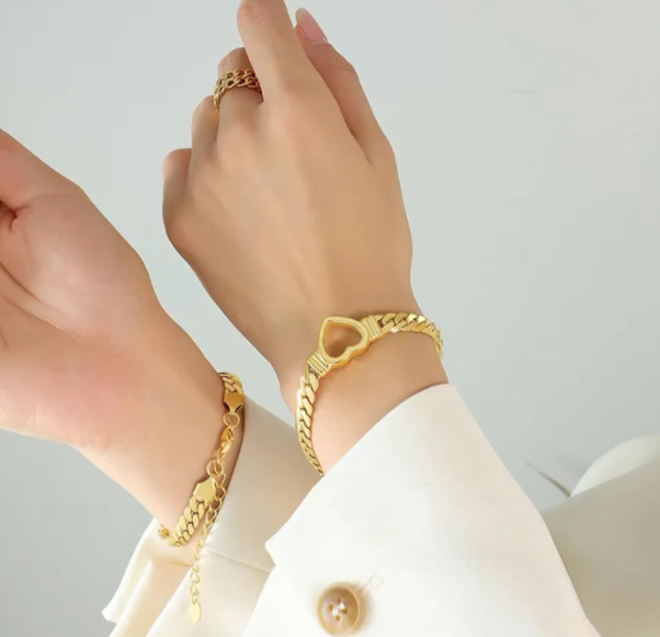 This gorgeous, elegant bracelet features a unique chain with a heart detail. The bracelet is made of 18k gold and features a heart design. It is the perfect length to wear with any outfit, and it looks amazing with the Raelene Heart Cuban Necklace, a great attention classic piece. ✨✨✨