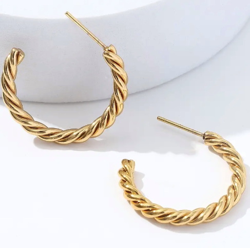 A classic 2in hoop with a twist (no pun intended). Inspired by a decade characterized by bold gold jewelry- and lots of it. This is our refined take on a 1970’s rope earring. ✨✨✨