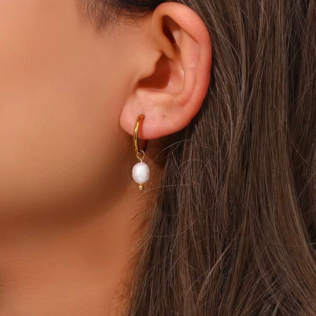 These golden hoop earrings with pearl charm are a modern classic and perfect addition to your wardrobe. You don’t need an occasion to wear these: pair them with your trusty denim cut-offs, and you’ve got your summer style sorted.