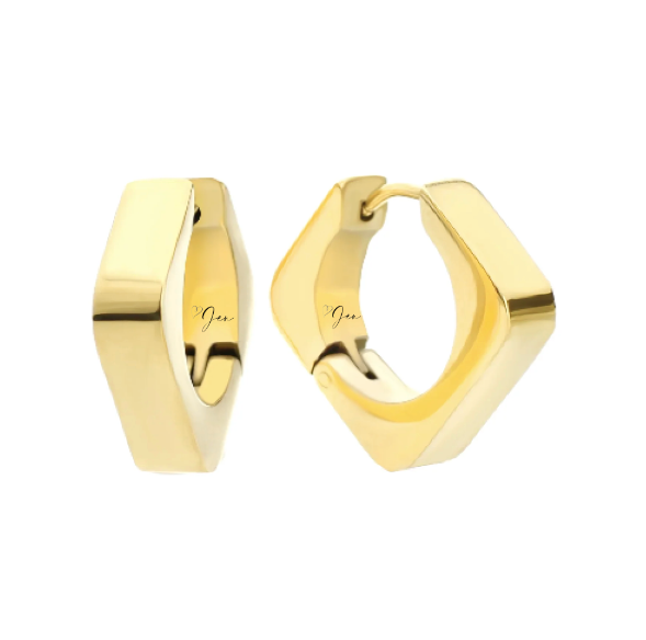 Be a trendsetter with these stylish block-shaped angled small huggie earrings. Each pair features polished small block square angled huggies, perfect for making a fashion statement. Add a unique edge to any outfit and step out in style! ✨✨✨