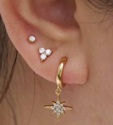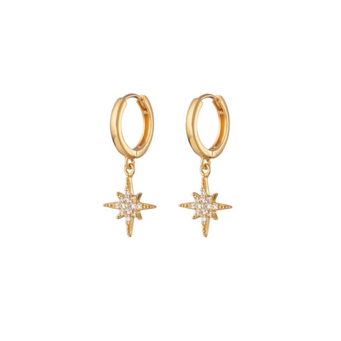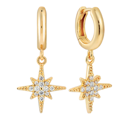 Our dainty Starburst gold huggie with paved moissanite diamonds. Let the guiding light of the north star help you find your way to your best self, which brings you love, laughter, and adventure.✨✨✨