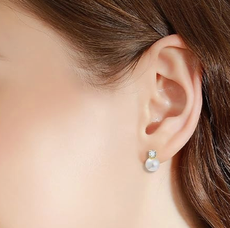 - Measurements: Pearl, each earring has 0.3 CT Mossanite, the total is 0.6 CT (Color D, VVS1)