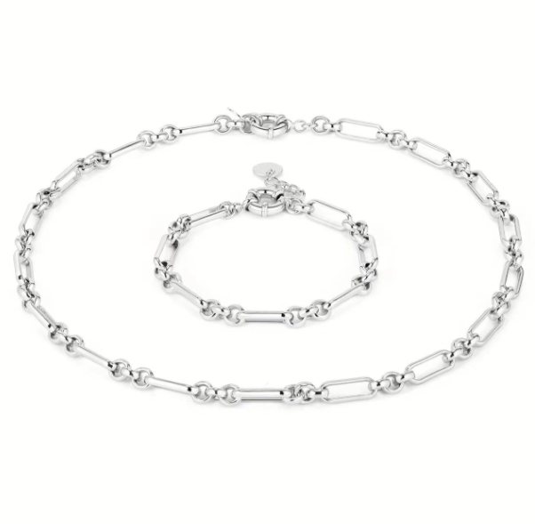 Bask in the golden gleam of this gorgeous Stefano Link bracelet. It features a mega figaro design with larger oval links alternating with smaller circular rings; it’s the perfect piece for any time wear; add the Stefana Link Necklace for a complete look.✨✨✨