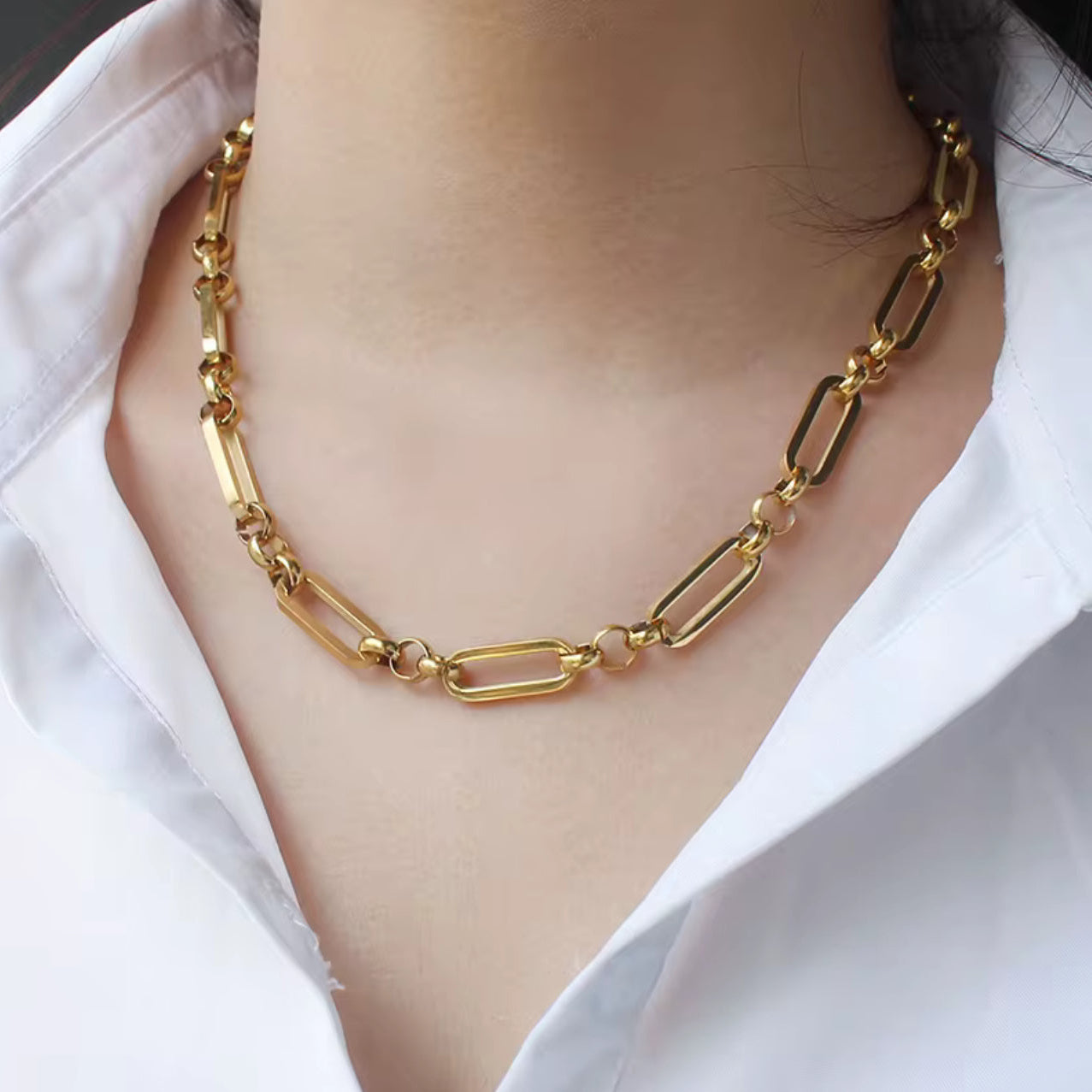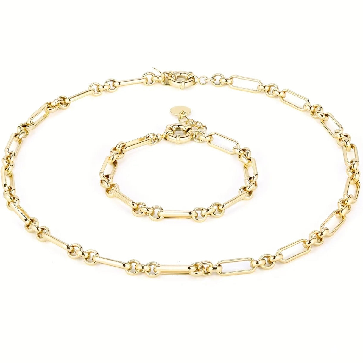 Bask in the golden gleam of this gorgeous Stefano Link necklace. It features a mega figaro design with longer oval links alternating with smaller circular links; it’s the perfect piece for any time wear; add the Stefana Link bracelet for a complete look.✨✨✨