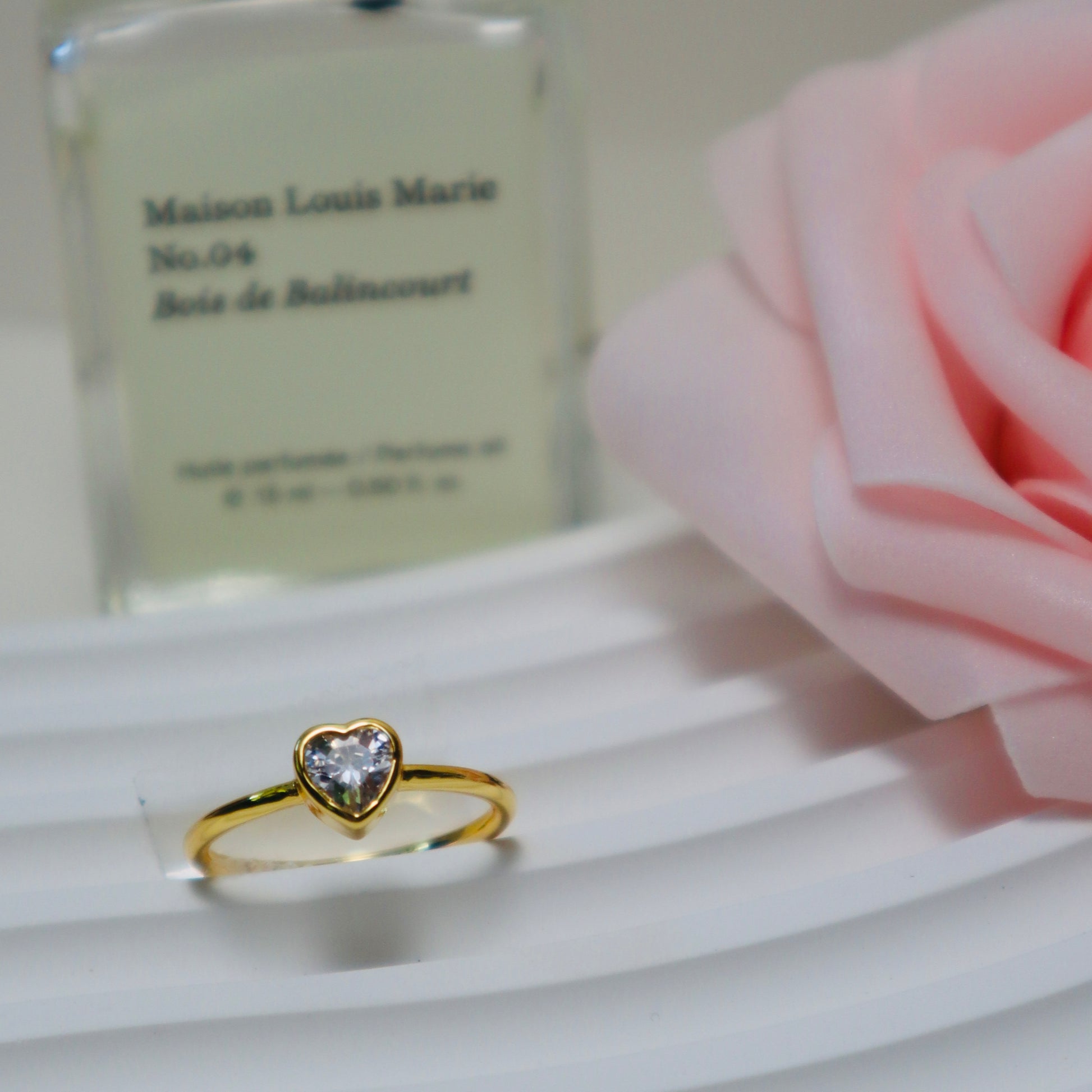 WHITE TOPAZ TINY HEART RING