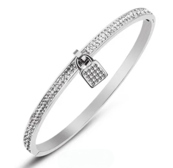 Elevate your wrist game with our stunning Paved Diamond Bangle featuring a dazzling diamond lock. Crafted in silver with a rose gold shiny finish, this bangle exudes elegance and sophistication. The pave diamonds add a touch of sparkle, making it the perfect accessory for any outfit. Treat yourself or a loved one to this timeless piece that will never go out of style.